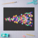 Comemore a época de férias de inverno com esta foto original, colorida e abstrato, de luzes de Natal desfocadas. O boque criou das luzes cor-de-rosa, vermelha, laranja, azul, verde e amarela forma de uma árvore de Natal. O fundo da imagem vertical é preto. Fotografia digital a cores. Copyright © Claire E. Skinner. Todos os direitos reservados.