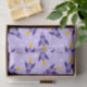 Um padrão de foguetes retrorreflectores roxos e estrelas brancas em um fundo mauve.