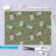 Eu usei este charmoso jardim rural, ainda que contemporâneo, design para embalagem e acessórios de papel. Deve ser vista perto de apreciar as multicores do verde, framboesa, ouro e azul claro num prado de coelhos brancos.