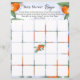 O jogo de folha de papel "Bingo" para chá de fraldas é decorado com uma ilustração de um delicioso galho tangerino com flores no estilo de esboço de aquarela.