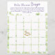 Papelão "Bingo" para chá de fraldas, chá de fraldas, decorado com belas ilustrações de aquarela de um adorável cavalo de balanço que está cercado por galhos delicados com folhas verdes claras.