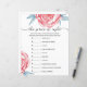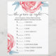 Paper Sheet game "the price is right" para um chá de fraldas apresenta adoráveis peonias aquáticas, flores rosadas e folhas esmeraldas.
