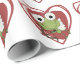 Um design bonito do dia de são valentim que caracteriza um Cupido do sapo em um coração vermelho grande no papel de papel de embrulho do dia dos namorados.