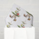 Os esquilos seguram uma árvore com aves amarelas e um romã vermelho neste papel de tecidos de férias.