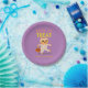 Papel Feliz prato de Halloween, roxo com gato múmia