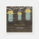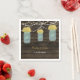 Rustic Barnwood, luzes de cordas balançando com flores amarelas em fraldas de mason jar personalizadas guardanapos de casamento de papel. Produtos correspondentes também disponíveis