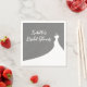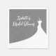 Tipo branco brilhante e um vestido de noiva elegante em um fundo de linho cinza ilustrado acentuam este guardanapo de chá de panela, tornando-o perfeito para um tema country, western, boho, inverno ou outono. Ele combina perfeitamente com a Coleção Chá de Panela Elegante em linho cinza.