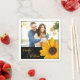 Guardanapo de girassol amarelo brilhante; personalize com nomes de casal e foto. Perfeito para janto de ensaio ou recepção de casamento casual.