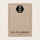 Esta placa de exibição de brinco possui um design preto e branco simples. Ele mostra uma borda preta de pínstripe, um lugar para adicionar seu logotipo, e combinar a tipografia moderna sobre um fundo de papel kraft bege arenoso. No verso, ele inclui informações de contato que podem ser completamente alteradas ou personalizadas para seus detalhes. É uma forma profissional, elegante e na moda para mostrar seu produto com orgulho. (Os orifícios do brinco são apenas marcadores impressos, a punção deve ser completada pelo cliente) **A placa de vídeo do colar correspondente está disponível. Contato do designer. ***NOTA DE DESIGN IMPORTANTE: Para qualquer solicitação de design personalizada, como solicitações de correspondência de produtos, alterações de cor, mudanças de posicionamento ou qualquer outra solicitação de alteração, clique no botão "CONTACT" ou envie um e-mail ao designer diretamente em lafemme.art@gmail.com. Você pode até enviar um e-mail para ela solicitando um design completamente personalizado e novo.