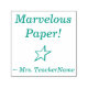 Este design de carimbo positivo apresenta a mensagem positiva de feedback "Papel maravilhoso!" e o nome de um professor, educador ou professor personalizado. Ele também apresenta uma forma decorativa de estrela. Ele poderia ser usado por um professor de escola, educador, instrutor ou orientador ao marcar tarefas, para indicar que o aluno fez bem.