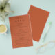 Menu de Casamento Terracotta com Tipografia Simples. Um alternativo PAPER (não cartão) de valor de excelente SEM ENVELOPES a um preço orçamentário. Você também pode alterar o estilo e as cores da fonte e as cores de fundo na frente e na parte traseira, se desejar, por meio da opção Clique para Personalizar mais.