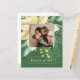 Cartão de Férias de Inverno de inverno da Flor de inverno e Alegria de Ricaso - projetado com um texto de tipografia maravilhoso e detalhe de inverno branco, amarelo e verde para a frente. fácil de adicionar seu próprio texto e foto - Envie suas saudações em estilo este feriado com um cartão de saudações personalizado com uma design floral de poinsettia branca