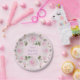Lindas rosas cor-de-rosa macias formam uma grinalda. Personalize este prato de papel com um nome e palavras. Todas as palavras podem ser alteradas para Aniversário, Dia das Mães, Chás de Bebê, Formatura, Casamento ou qualquer outra ocasião. Copos de papel combinando estão disponíveis.