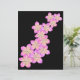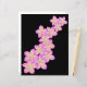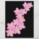 Caracteriza flores de frangipani rosa e amarelo desenhadas à mão em um fundo preto.