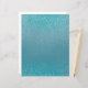 Design apresenta poeira de shimmer turquesa de agitação com brilho em um fundo turquesa.