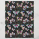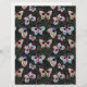 Papel de rasparia giro de 8,5" x 11" impresso com crânios de açúcar de borboleta giro sobre fundo paisley preto-mudo.