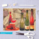 Papel tecidular para vinho com imagem de rolhas de garrafas e garrafas de vinho, queijo e uvas.