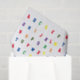 Design apresenta o alfabeto padronizado em letras brilhantes e coloridas de estêncil sobre um fundo branco. Projetado para coordenar com a "Coleção de Chás de fraldas ABC".