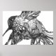 Crie sua própria Arte de Parede Única. Lindos tons de beija-flor preto e branco grandes e detalhados com design e formas que você pode colorir. Adicione sua cor de fundo, letras ou sua própria arte fotográfica.