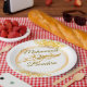Adicione um toque de sofisticação ao seu dia especial com este prato de casamento lindamente desenhado, personalizado com os nomes Mohammed & Bouchra. Com uma moldura ornamental dourada luxuosa e tipografia em letra cursiva elegante, este prato descartável é perfeito para recepções de casamento, festas de noivado ou celebrações de aniversário de casamento. Um complemento refinado e memorável para qualquer decoração de casamento clássica.