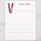 Um abstrato floral divertido e divertido com letras do alfabeto. O papel linhado está pronto para escrever.