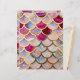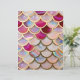 Um padrão mesmerizador de esfregar escalas opalescentes inspiradas na sereia em tons de rosa, magenta e pêssego, em uma borda dourada. A combinação de cores ousadas e o efeito sombrio, holográfico, cria um design cativante e encantador.