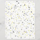 Este artigo apresenta um padrão terrazzo geométrico moderno com speck minúsculos em tons amarelos e cinzas em fundo branco. Personalize-o com as suas próprias cores clicando em Editar design.