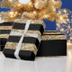 O falso Sparkly do ouro brilha e enegrece o papel de papel de embrulho das listras.