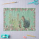Este design único inspirado em vintage está num fundo de madeira verde angustiante e rosas enquadram a cena de uma menina brincando com coelhinhos de Páscoa. Perfeito para a desvinculação de arte, artesanatos de papel ou embrulho de presente. Certifique-se de checar a bolsa de presente!