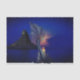 Papel tecidular com imagem de uma cauda de sereia contra uma lua ascensão num mar azul.