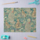 Baseado no wallpaper "Forest" da era vitoriana de William Morris com coelhos, lobos e pavões em uma floresta verde.