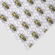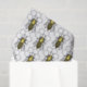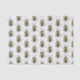 Abelha amarela e preta sentada sobre o pente de mel. Imagem em padrão de azulejo escalonado em fundo branco.