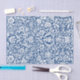 Arte de design floral, antiga e decorativa, vitoriana, antiga arte de linhagem ornamental branca, floresce em Chathams azul.