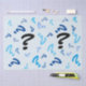 O ponto de interrogação é o caractere padrão. Personalize com qualquer caractere de teclado. Dois grandes caracteres centrais em preto são cercados caracteres menores que se embaralham ao redor do plano de fundo, mostrando em vários tons de azul.