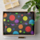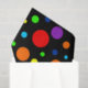 Manchas arco-íris de diferentes tamanhos num fundo preto.