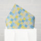 Um papel de tecido desenhado com um padrão quadrado em tons azuis e amarelos. Personalize o tamanho do padrão entre outras opções.