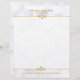 Papel Timbrado Acento Dourado Floral de Mármore Branco Personaliz