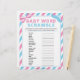Desembaralhe as palavras relacionadas ao bebê. A primeira pessoa a terminar ganha! Entre em contato conosco diretamente caso você precise de uma cópia das respostas para este jogo. Ficaríamos felizes em fornecê-lo a qualquer um que tenha encomendado o jogo.