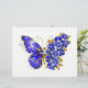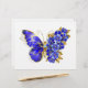 Borboleta de flores cinza, azul, safira, espumante com asa decorada com flores preciosos azuis com folhas de ouro sobre fundo branco.