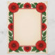 Simple, bright red flowers with green leaves surround a red frame on a light tan background. Eye-catching, colorful, and perfect for correspondence, newsletters, invitations, and more.