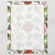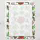 Um papel timbrado de papelaria de Natal para escrever as suas cartas de férias a amigos e familiares decorados com plantas de férias botânicas de poinsettias, rosas de Natal, bagas ocas, cones de pínus, e bagas de baias desenhadas com tinta e aquarela.