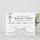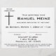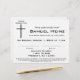 Certificados modernos de dedicação de bebês preto-e-branco, minimalistas, com uma simples cruz negra com o nome do seu filho/filha — acompanhados dos detalhes da sua cerimônia.