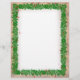 Green Christmas garland with red sparkles and faux wood border stationery letterhead.