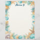 Conchas e estrelas-do-mar azuis, bege e cinza claro, intercaladas com algas marinhas penugadas e corais, tornam esse papel de carta temático náutico perfeito para quem ama a praia e o oceano.