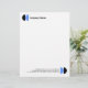 Um design de modelo de cabeçote de impressão comercial com um motivo decorativo de duas tonalidades de crescente duplo colocado no canto superior esquerdo a 1/2 polegada das bordas do papel e também no canto inferior direito onde o motivo está girado para que os tomos sejam revertidos. Nome da empresa alinhado ao lado do motivo superior com detalhes de e-mail, Web, endereço e telefone alinhados ao lado do motivo inferior. Esse design profissional simples, mas atraente, pode ser personalizado de muitas maneiras.