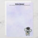 Letterhead personalizada com um nome e endereço em um fundo de cor digital roxa suave. Um coala fofo comendo eucalipto e vestindo um boné de formatura preto.