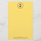 Papel timbrado de apiário ou empresa agrícola de abelha dourada com abelha e coroa em um estilo de logotipo redondo com fundo amarelo dourado. Negrito e atraente. Personalize com suas informações de contato no verso. Para um apiário que vende mel, velas e sabão. também adequado para um fabricante de velas de cera de abelha artesanal ou fabricante de sabão. DICA: ao personalizar o tipo no círculo, você pode encurtar sua lista para caber no círculo. Há espaço para uma quantidade maior de texto removendo as palavras "desde 2010". Entre em contato se precisar de ajuda com uma linha de texto. Veja a coleção completa de produtos para este design: https://www.zazzle.com/collections/golden_bee_apiary_honey_products-119141405397873975