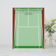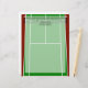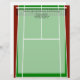 A ilustração gráfica de tênis de court apresenta o layout do tribunal em perspectiva com linhas brancas, de rede preta e verde com áreas "fora" vermelhas escuras. Excelente para vendas de tênis ou esportes e malhações de negócios, marketing, motivacionais ou de saúde e bem-estar. Disponível como um conjunto completo pessoal ou de negócios, incluindo convites para eventos ou torneios, cartões de visitas, adesivos, etiquetas e muito mais!