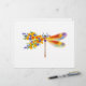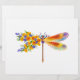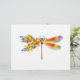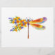 Pintura artificial, libélula floral em laranja e roxo contrastantes com papoila amarela, brilhante e florescente da Califórnia e flores silvestres azuis em fundo branco.