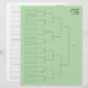 Elimination draw template paper print sheet for 32 players. Handy for sports like tennis, badminton, table tennis, pickleball, squash, padel and other racket sports and races. Green or custom background color. Two sided print with extra tournament draw on the back. Personalized supplies for sports matches, scheduled games and championship club events. Share this final court planner with coaches, teams and players. Easy to hang up on a display board. Custom schedules for ranking opponents and seeded competitors in athletic contests. Useful for singles and doubles.